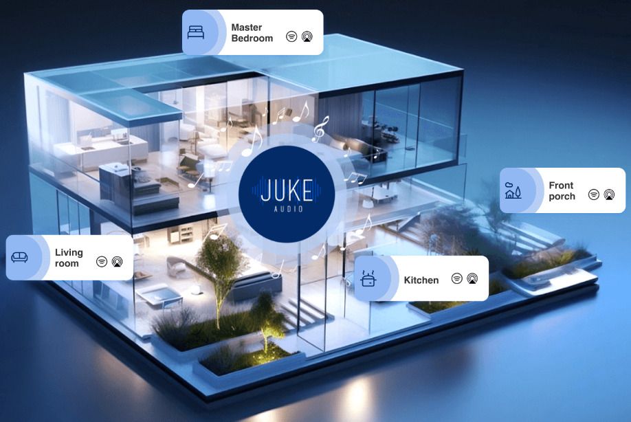 For example, you could set up soft background music in the kitchen and dining area while playing a more immersive audio experience in the living room, all controlled via the Juke app.