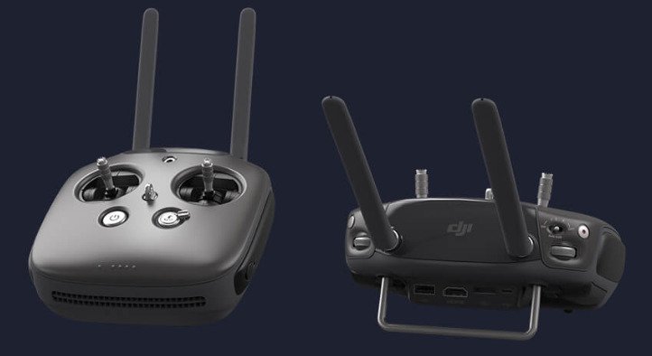 New master and slave controller range extends to 328 feet and users can change between 2.4 GHz and 5.8 GHz frequencies. Photo: DJI
