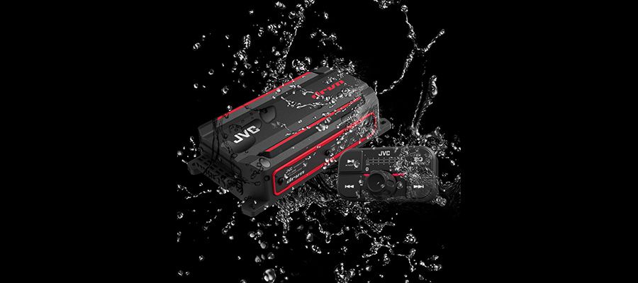 The KS-DR2104DBT features a robust all-weather chassis that is waterproof, dustproof, salt-spray rustproof, and resistant to damage from excessive vibrations. It is built to withstand tough environments, including power washing. The amplifier comes equipped with Bluetooth connectivity, allowing you to stream music directly from your phone or tablet. It also includes a Bluetooth remote control, which allows you to adjust the volume, EQ, and track selection.  photo: JVC JVC KS-DR2104DBT amplifier