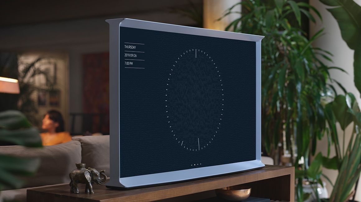 Turn the blank screen into a design piece with the Bouroullec Palette theme for Serif Ambient mode. Two exclusive models for The Serif. It automatically adapts to the light in your room, so you can easily make the big screen empty a thing of the past.