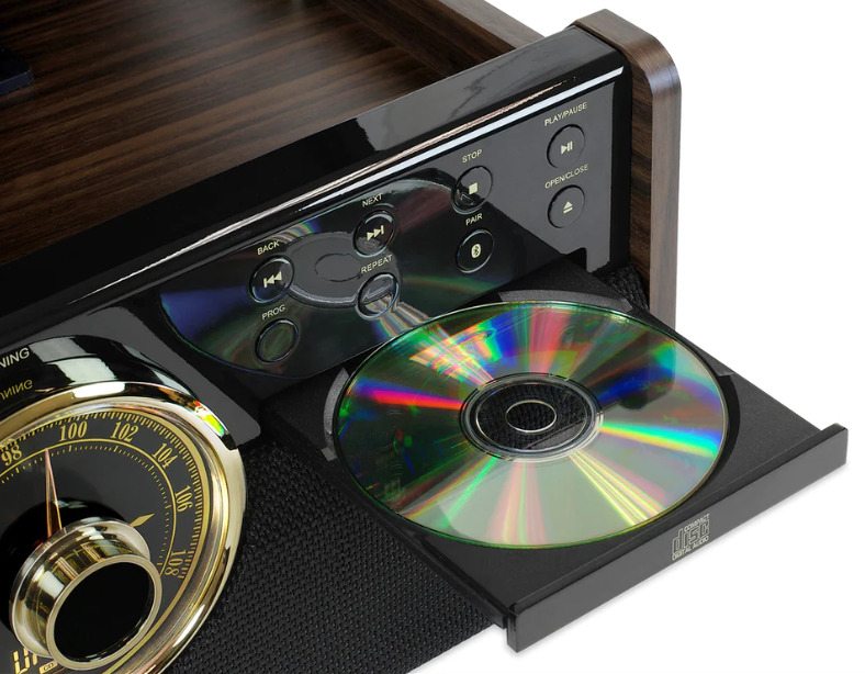 One of the standout features of the design is the nostalgic rotary dial for the FM radio, harking back to a time when tuning in meant more than just pressing a button. The turntable’s overall build quality is commendable, and it feels like a durable piece of equipment that can withstand the test of time.