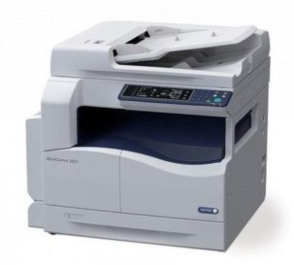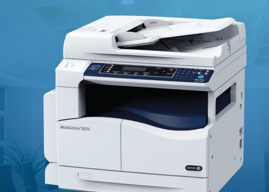 The Xerox WorkCentre 5024 monochrome multifunction printer has a compact design to